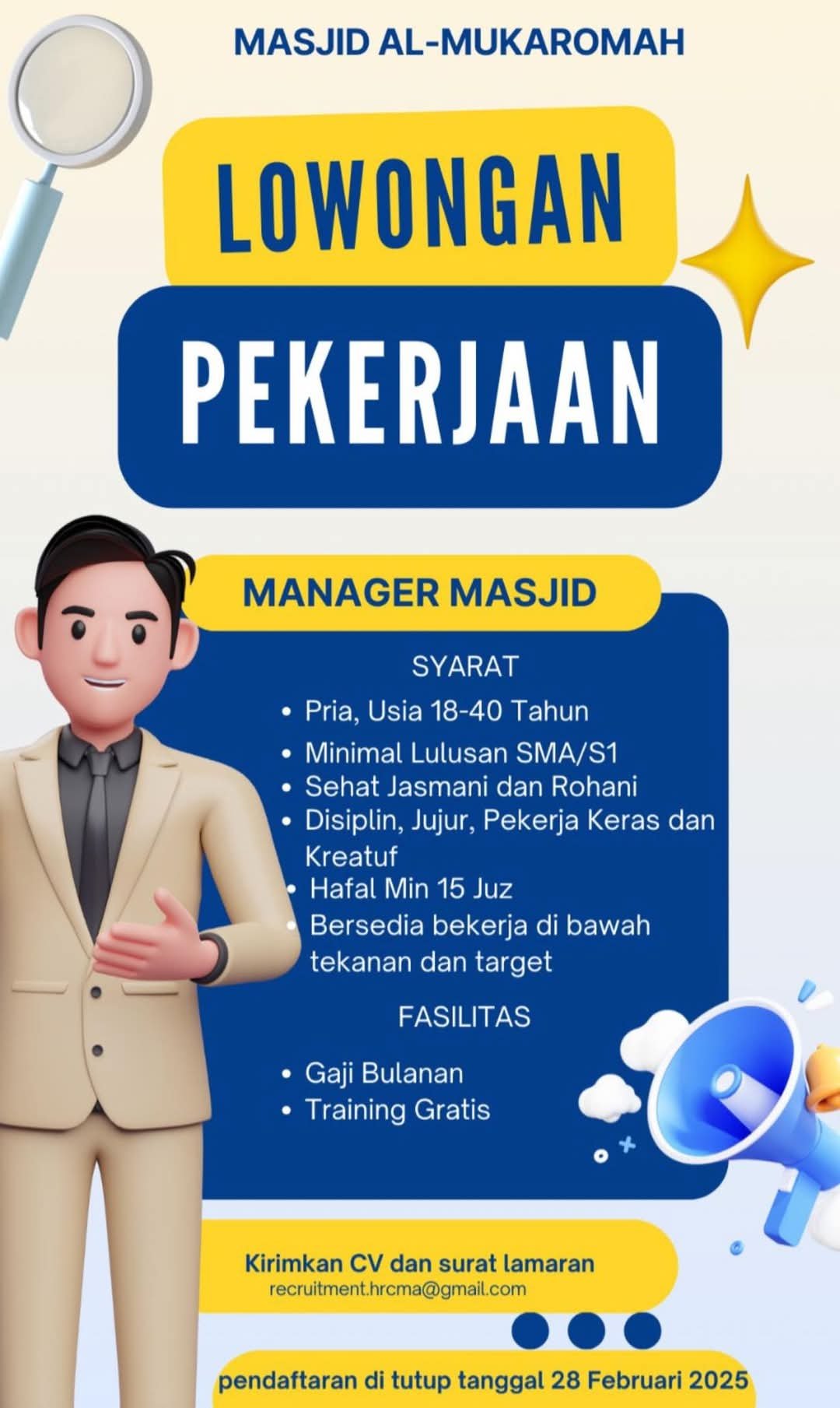 H. Isro Abdilah Membuka Lowongan Pekerjaan Untuk Pengurus Masjid