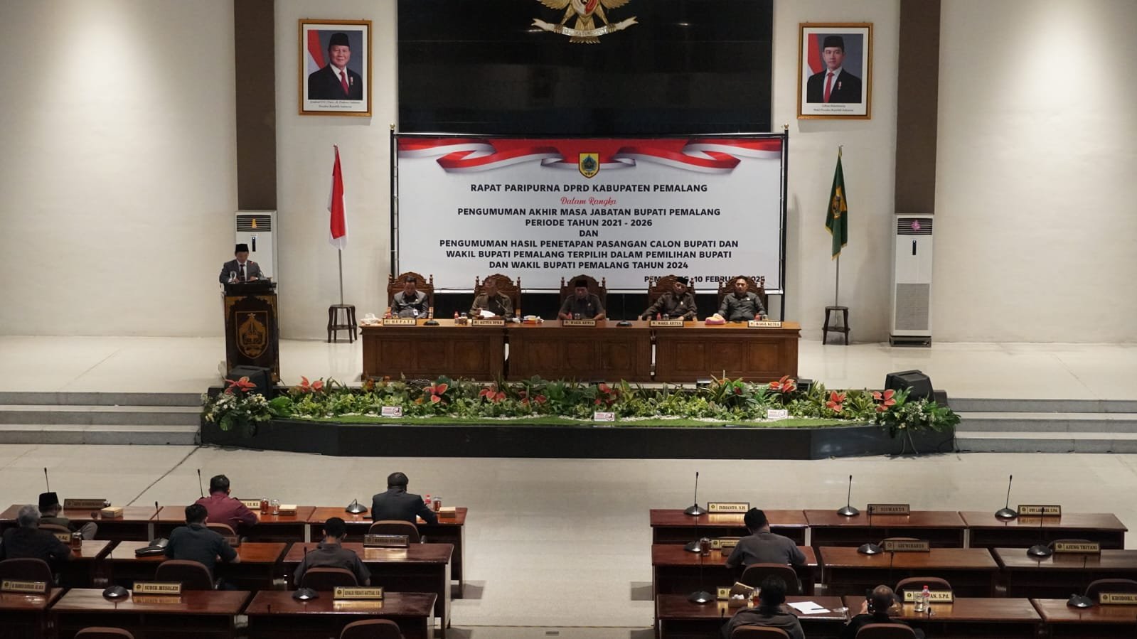 Emsatunews.co.id, Pemalang – Dewan Perwakilan Rakyat Daerah (DPRD) Kabupaten Pemalang menggelar Rapat Paripurna dalam rangka pengumuman akhir masa jabatan Bupati Pemalang periode 2012-2026 serta hasil penetapan calon Bupati dan Wakil Bupati Pemalang terpilih dalam Pemilihan Kepala Daerah (Pilkada) Serentak 2024. Acara yang berlangsung di Ruang Sidang Paripurna DPRD Kabupaten Pemalang ini dihadiri oleh berbagai unsur pemerintahan dan tokoh masyarakat.