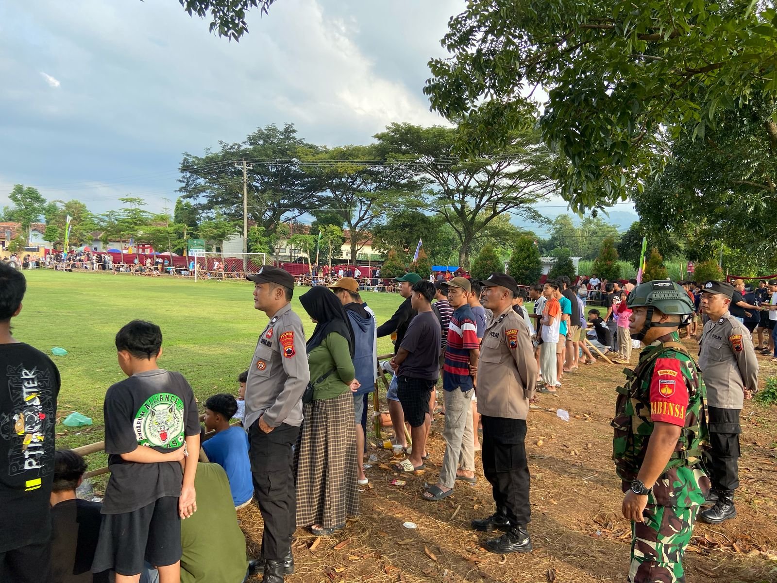 EMSATUNEWS.CO.ID,PEKALONGAN Personil TNI-Polri bersinergi mengamankan laga Grand final turnamen sepak bola Pelajar Sinangohprendeng Cup 2025 yang dilangsungkan di lapangan sepak bola Desa Sinangohprendeng, Kecamatan Kajen, Kabupaten Pekalongan, Minggu (27/04/2025).