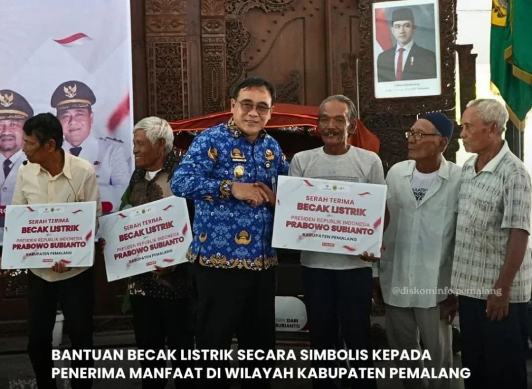 Emsatunews.co.id, Pemalang – Di tengah upaya pemerintah untuk terus mengentaskan kemiskinan dan meningkatkan taraf hidup masyarakat, sebuah inisiatif mulia hadir di Kabupaten Pemalang. Sebanyak 25 pengayuh becak yang telah lanjut usia mendapatkan anugerah berupa becak listrik canggih, langsung dari kantong pribadi Presiden Republik Indonesia. Penyerahan simbolis bantuan ini menjadi momen penting yang disaksikan langsung di Pendopo Kabupaten Pemalang pada Kamis (17/7/2025), oleh Kepala Badan Percepatan Pengentasan Kemiskinan RI dan Ketua Yayasan Gerakan Solidaritas Nasional. Becak-becak modern ini kemudian diserahkan kepada para penerima manfaat melalui perantara Wakil Bupati Pemalang.
