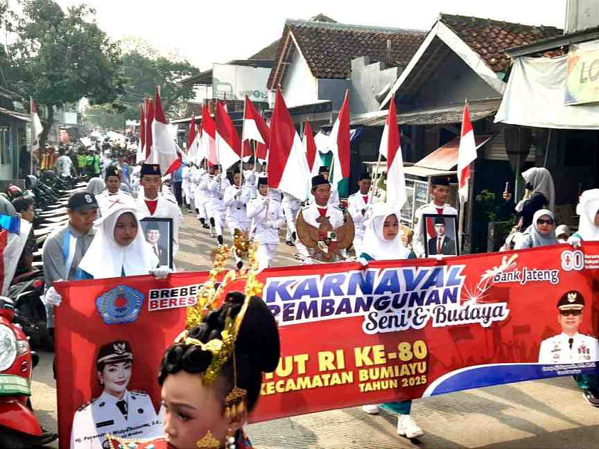 EMSATUNEWS.CO.ID, BREBES – Pemerintah Kecamatan Bumiayu, Kabupaten Brebes, menggelar Karnaval Pembangunan, Seni, dan Budaya Dalam rangka memperingati Hari Ulang Tahun (HUT) ke-80 Kemerdekaan Republik Indonesia, pada Minggu, 24 Agustus 2025.