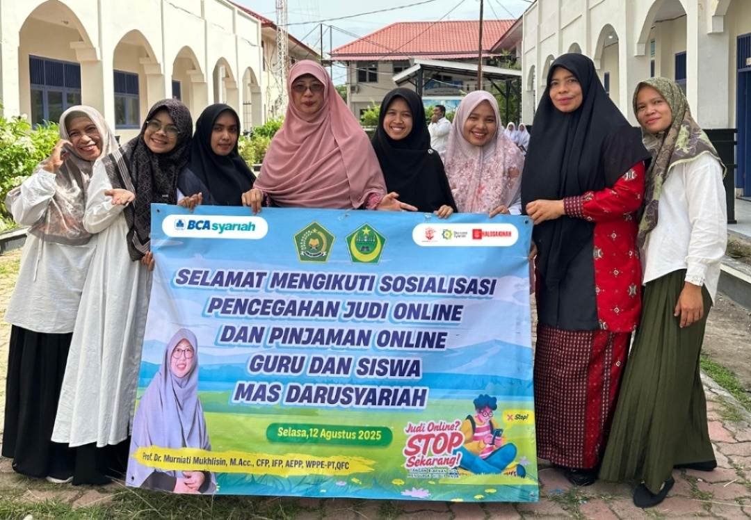 EMSATUNEWS.CO.ID – BANDA ACEH – Sakinah Finance, sebuah lembaga asal Kota Bogor yang aktif dalam penyampaian literasi dan edukasi syariah kali ini berada di Banda Aceh. Pendiri sekaligus Motivator Sakinah Finance, Murniati Mukhlisin mengadakan sosialisasi pencegahan dan penanganan pinjaman online (pinjol) dan judi online (judol) di Madrasah Aliyah Swasta Darusyariah binaan Masjid Raya Baiturrahman, Banda Aceh.