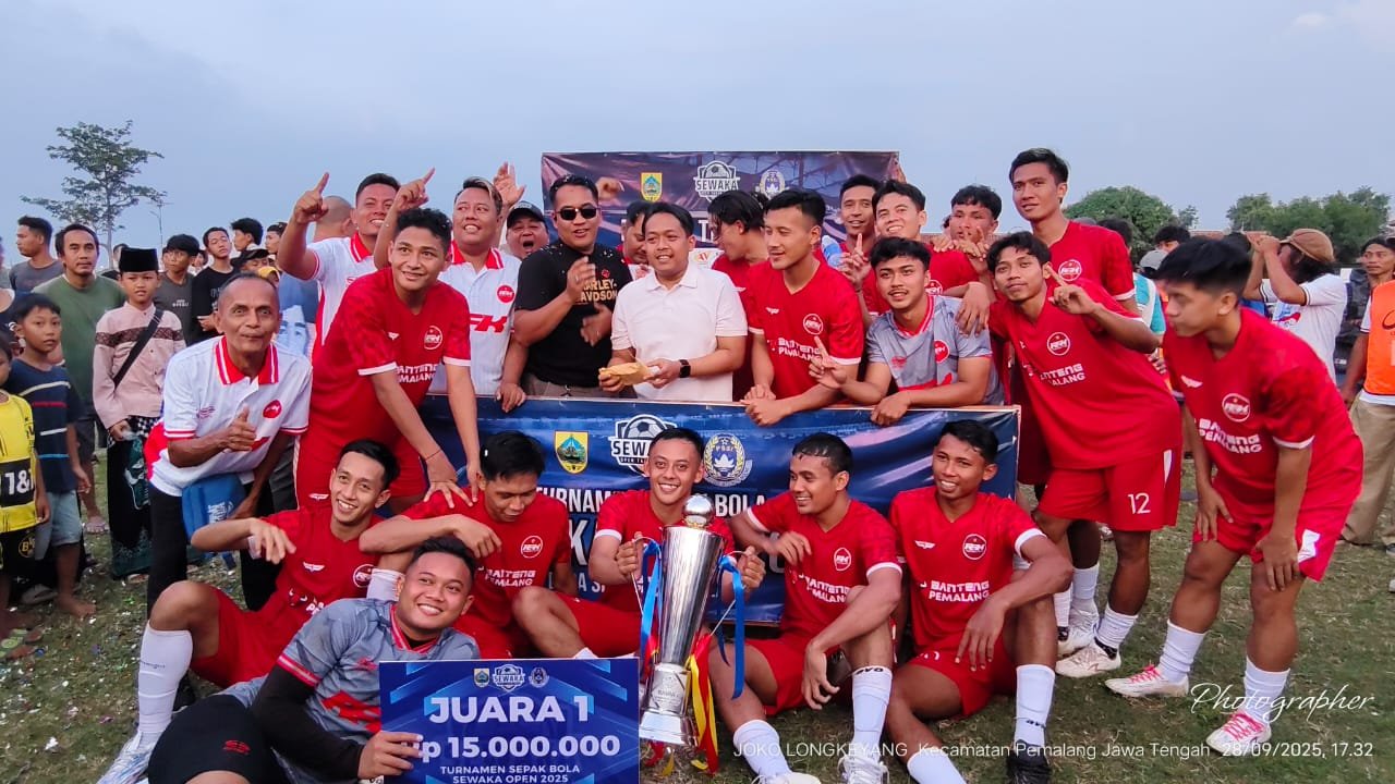 Emsatunews.co.id, Pemalang – Turnamen Sepak Bola Sewaka Open 2025 resmi ditutup dengan laga puncak yang sarat gengsi di Lapangan Olahraga Desa Sewaka, Kecamatan/Kabupaten Pemalang, Jawa Tengah pada Minggu (28/9/2025). Pertandingan final mempertemukan dua tim terbaik, yakni PS RFK (Rinaldi Firdaus Kautsar) Pemalang melawan PS YCP Baladewa, yang berakhir dengan kemenangan tipis bagi PS RFK.