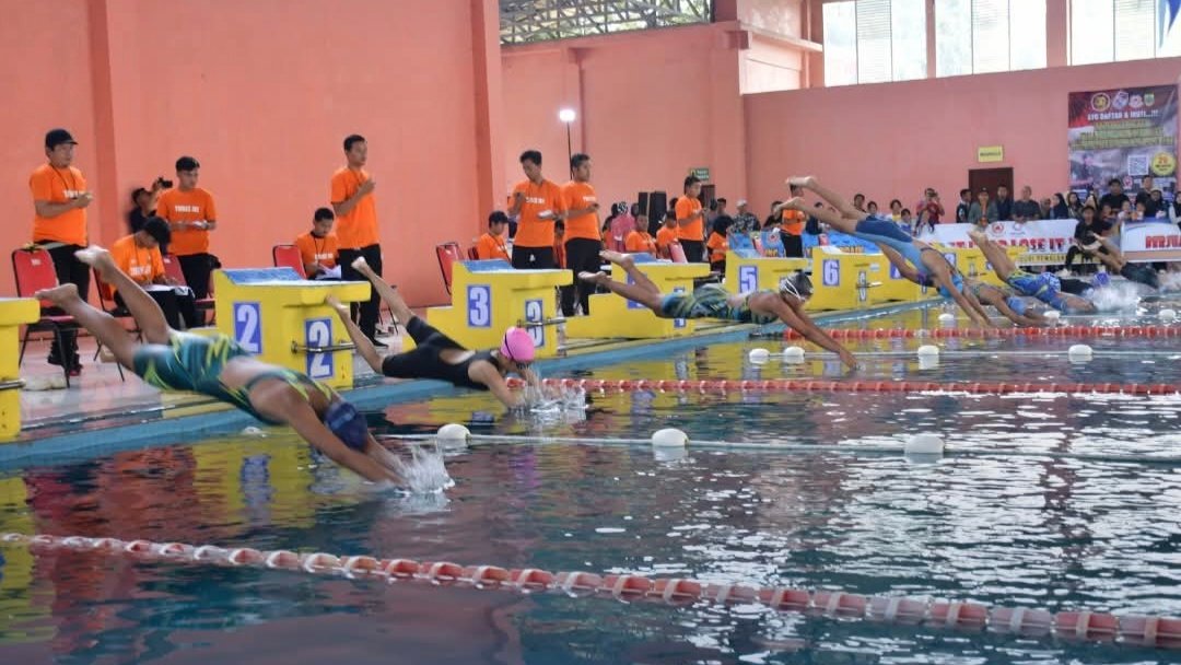 Emsatunews.co.id, Pemalang – Semangat kompetisi dan pencarian bakat olahraga renang memeriahkan peringatan Hari Ulang Tahun (HUT) TNI Ke-80 di Kabupaten Pemalang. Kejuaraan Renang Piala Dandim 0711/Pemalang Tahun 2025 resmi digelar di Kolam Renang Olympic Widuri, Minggu (26/10/2025), dengan partisipasi luar biasa.