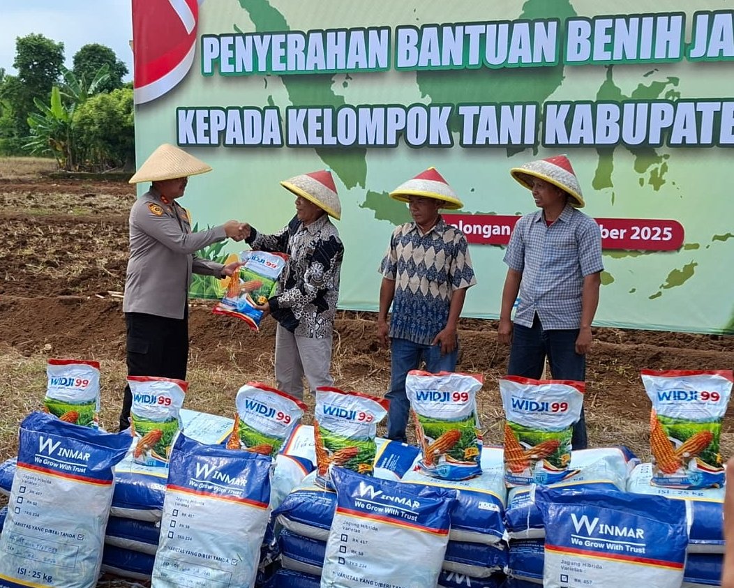 EMSATUNEWS.CO.ID, PEKALONGAN – Komitmen Polres Pekalongan dalam mendukung program ketahanan pangan nasional dibuktikan dengan penyerahan bantuan bibit jagung secara simbolis. Sebanyak 15 ton bibit jagung diserahkan kepada Kelompok Tani di Kabupaten Pekalongan, Kamis (27/11/2025).