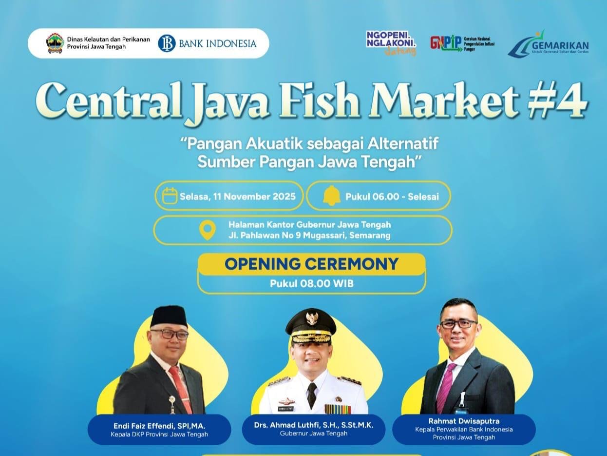 Untuk terus menggaungkan ajakan Gemar Makan Ikan (Gemarikan), Pemprov Jateng akan menggelar Central Java Fish Market untuk keempat kalinya pada 11 November 2025, bertempat di Halaman Kantor Gubernur Jawa Tengah.