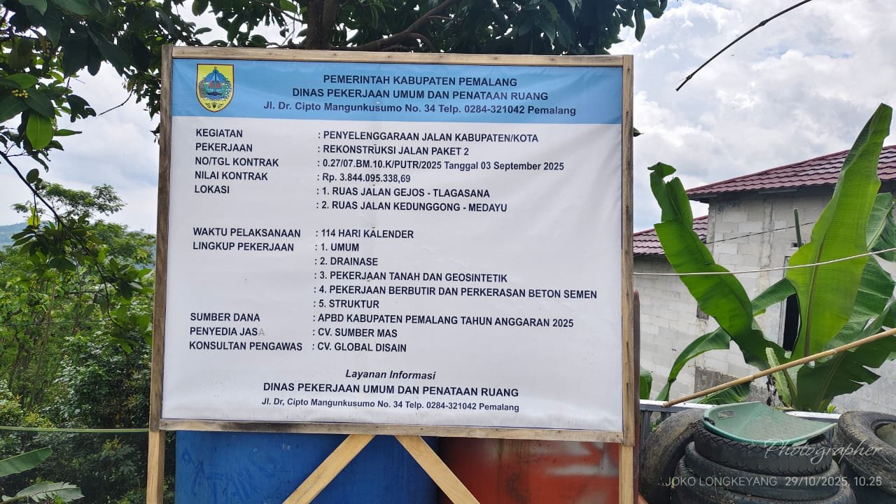 1. Ruas Gejos–Tlagasana, Kecamatan Watukumpul, yang berfungsi vital untuk meningkatkan konektivitas dan mempermudah mobilitas masyarakat, termasuk distribusi hasil pertanian di daerah dengan kontur berbukit.