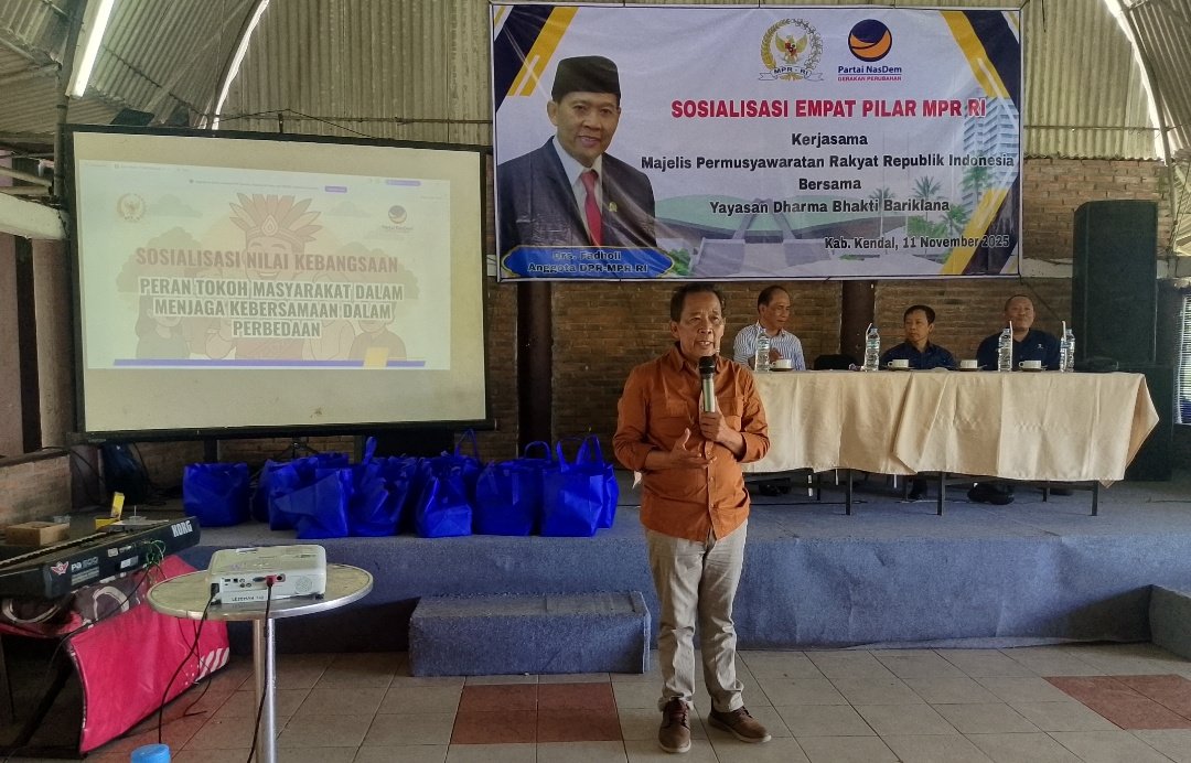 EMSATUNEWS.CO.ID, KENDAL – Anggota DPR-MPR RI, Drs Fadholi, yang merupakan kader Partai Nasional Demokrat (Nasdem) dari Daerah Pemilihan (Dapil) 1 Jawa Tengah, gelar sosialisasi empat pilar kebangsaan, Selasa (11/11/2025) pukul 13.30 WIB, di Loka Wisata Tirto Arum Baru Kendal, Kabupaten Kendal, Jawa Tengah.