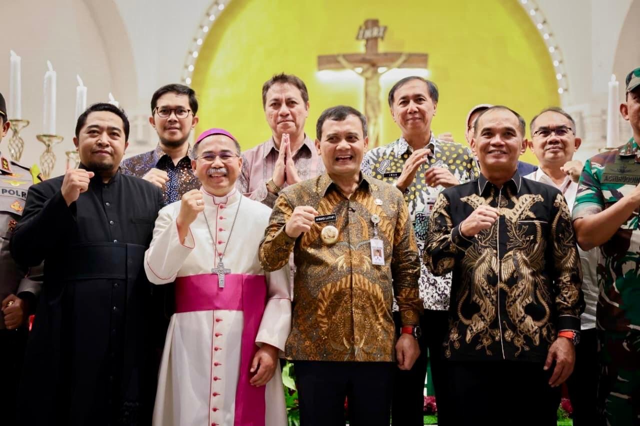 Emsatunews.co.id, Semarang – Suasana khidmat menyelimuti Gereja Katedral Santa Perawan Maria Ratu Rosario Suci Semarang saat Gubernur Jawa Tengah, Ahmad Luthfi, hadir menyapa jemaat yang tengah bersiap melaksanakan misa Natal, Rabu sore (24/12/2025). Kedatangannya bersama jajaran Forkopimda menjadi simbol kuatnya harmoni dan jaminan keamanan di wilayah Jawa Tengah.