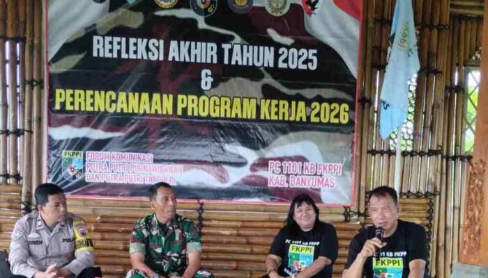 EMSATUNEWS..CO.ID || Baturraden-BANYUMAS — Forum Komunikasi Putra Putri Purnawirawan TNI–Polri (FKPPI) Kabupaten Banyumas menegaskan komitmennya untuk terus berada di garda terdepan dalam menjaga keutuhan Negara Kesatuan Republik Indonesia (NKRI) sekaligus memperkuat peran sosial dan ekonomi di tengah masyarakat. Komitmen tersebut ditegaskan dalam kegiatan evaluasi dan konsolidasi organisasi yang digelar di Embung Kemutug Lor, Kecamatan Baturaden, Ahad (11/1/2026).