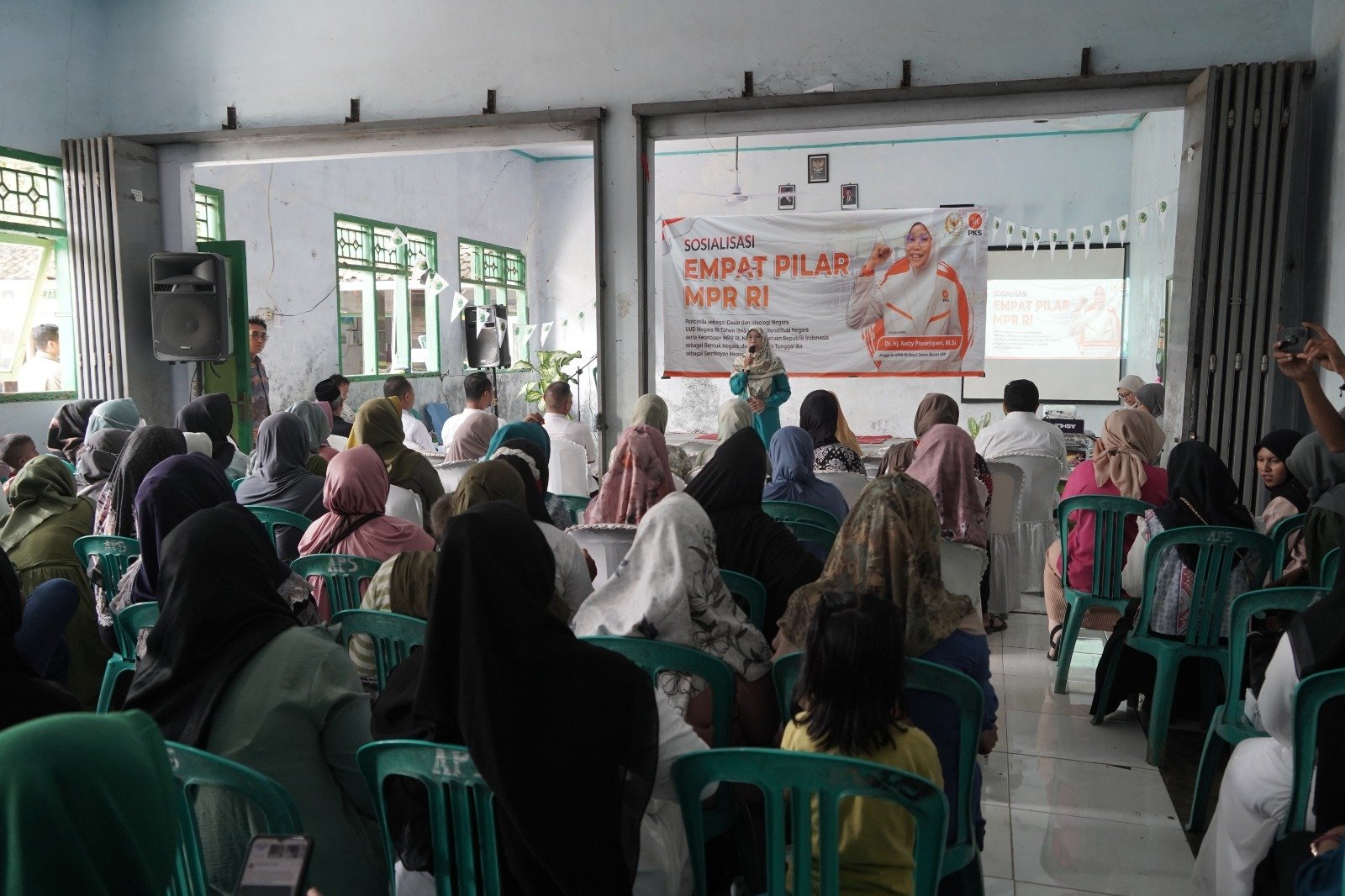 EMATUNEWS.CO.ID, INDRAMAYU – Anggota Majelis Permusyawaratan Rakyat Republik Indonesia (MPR RI), Netty Prasetiyani Aher, melaksanakan kegiatan Sosialisasi Empat Pilar MPR RI bersama masyarakat umum yang digelar di SMP PUI, Jalan Legok, Margamulya, Kecamatan Bongas, Kabupaten Indramayu, Selasa (9/12). Kegiatan berlangsung dari pukul 12.00 hingga 16.15 WIB.