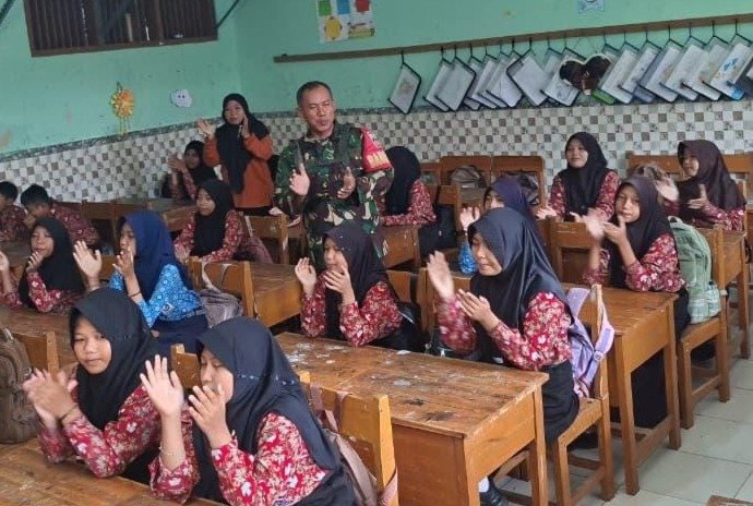 ​Pada Jumat (13/2), suasana belajar di kelas 6 SDN Cikuya 01, Kecamatan Banjarharjo, terasa berbeda. Serka Sagiman, salah satu personel Satgas TMMD, hadir di tengah siswa untuk menularkan semangat patriotisme dan motivasi belajar. Kehadiran seragam loreng di depan kelas ini disambut antusiasme tinggi oleh para murid yang didampingi langsung oleh guru kelas mereka, Waenah, S.Pd.