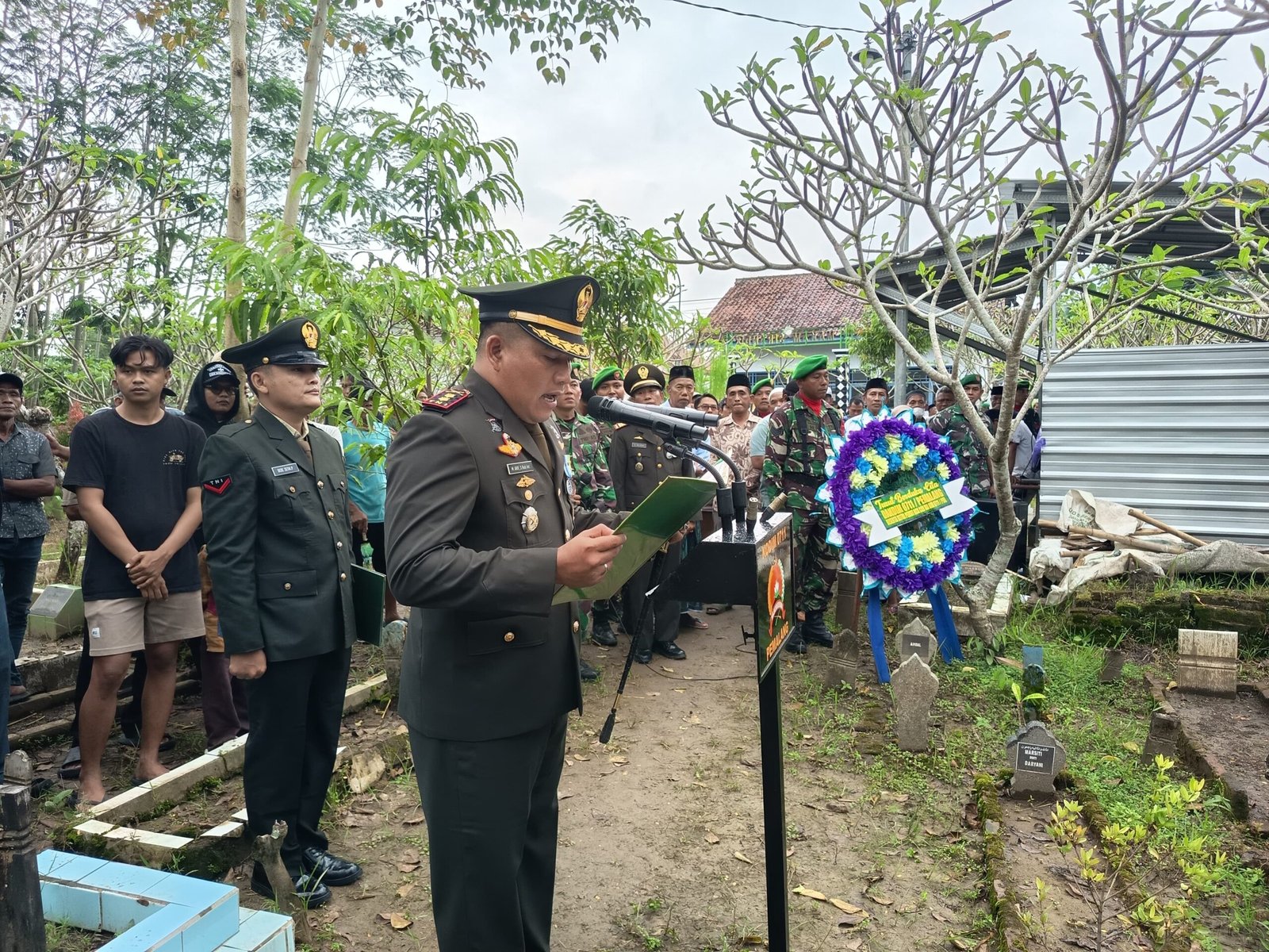Prosesi diakhiri dengan upacara pemakaman militer yang berjalan lancar. Dandim menyampaikan apresiasi kepada seluruh pihak yang telah membantu secara moril maupun materil sehingga rangkaian acara dapat terlaksana dengan khidmat hingga akhir.**( Joko Longkeyang)