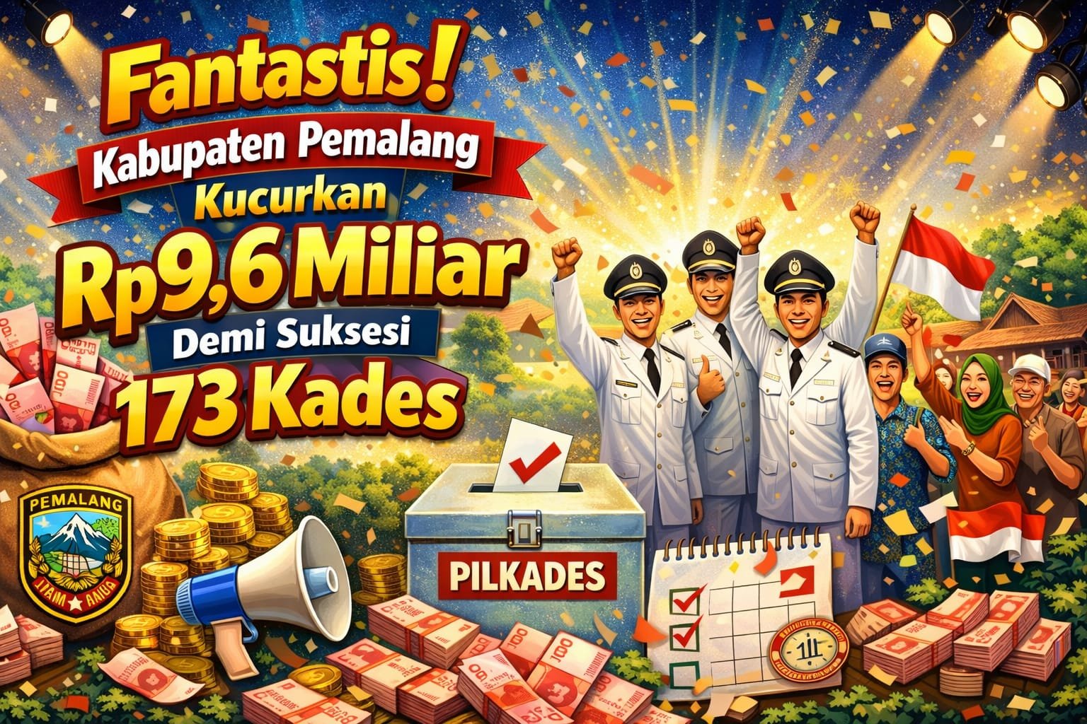 Emsatunews.co.id, Pemalang – Pemerintah Kabupaten Pemalang memastikan kesiapan finansial guna menyukseskan gelaran Pemilihan Kepala Desa (Pilkades) Serentak tahun 2026. Tidak tanggung-tanggung, anggaran sebesar Rp9,6 miliar telah dipatok untuk membiayai pesta demokrasi di 173 desa yang tersebar di wilayah Kabupaten Pemalang.