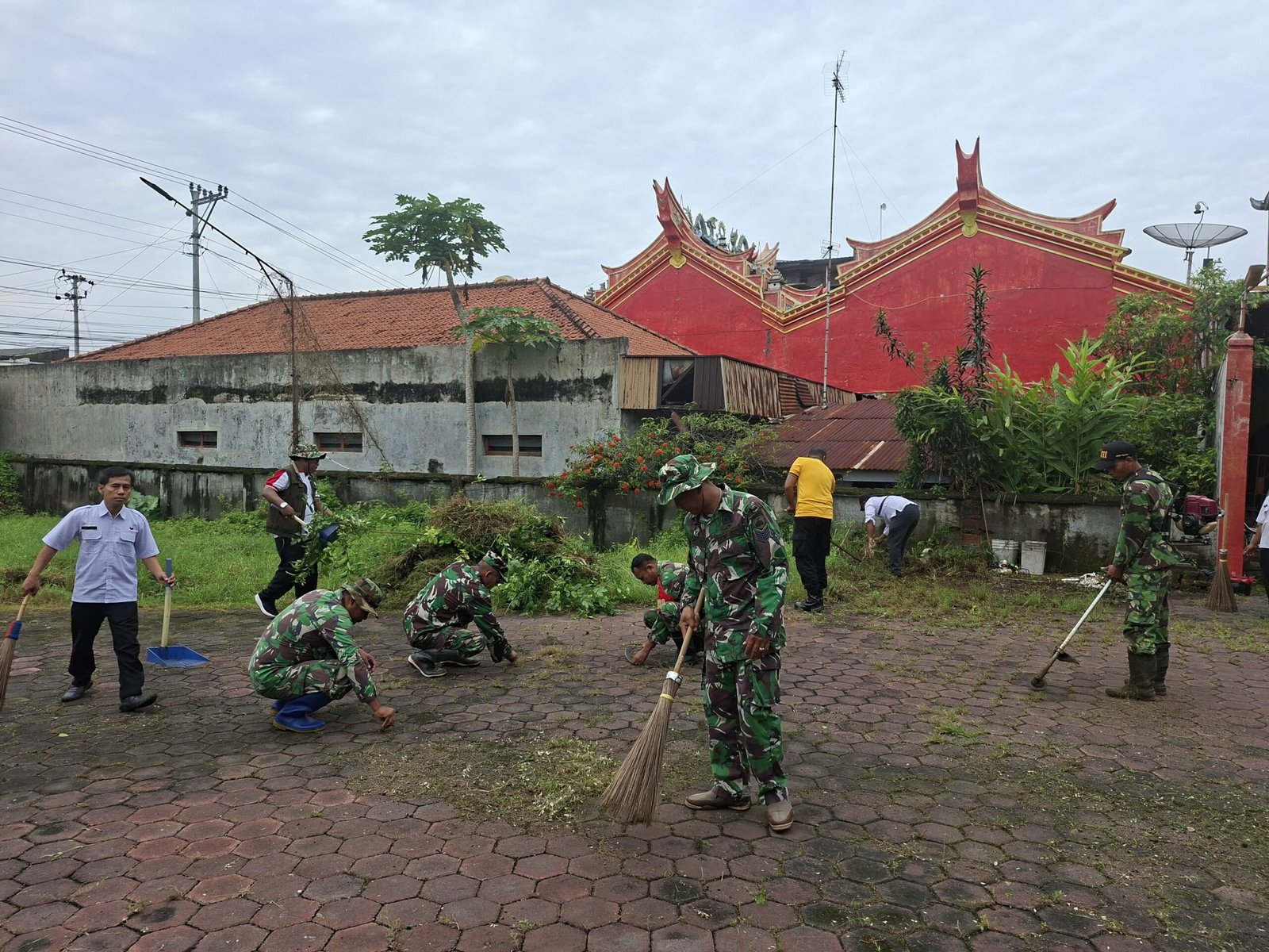 Emsatunews.co.id, PEMALANG – Semangat kebersamaan dan kerukunan umat beragama terpancar jelas di Kelurahan Purwoharjo, Kecamatan Comal, Rabu (11/2/2026). Puluhan personel gabungan dari Koramil 04/Comal, Polsek, hingga pihak kecamatan terjun langsung melakukan aksi bersih-bersih di Klenteng Tin An Bio dalam tajuk Gerakan Indonesia ASRI (Aman, Sehat, Resik, Indah).