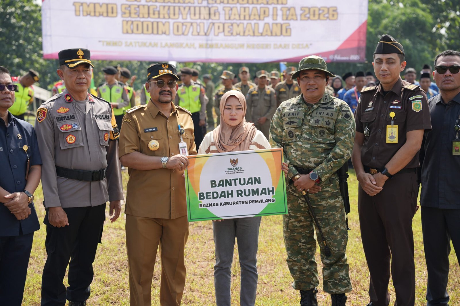 ​Upacara pembukaan ditutup dengan peninjauan langsung lokasi rehabilitasi RTLH oleh jajaran Forkopimda Pemalang untuk memastikan bantuan tepat sasaran dan pengerjaan dimulai sesuai jadwal. **( Joko Longkeyang).