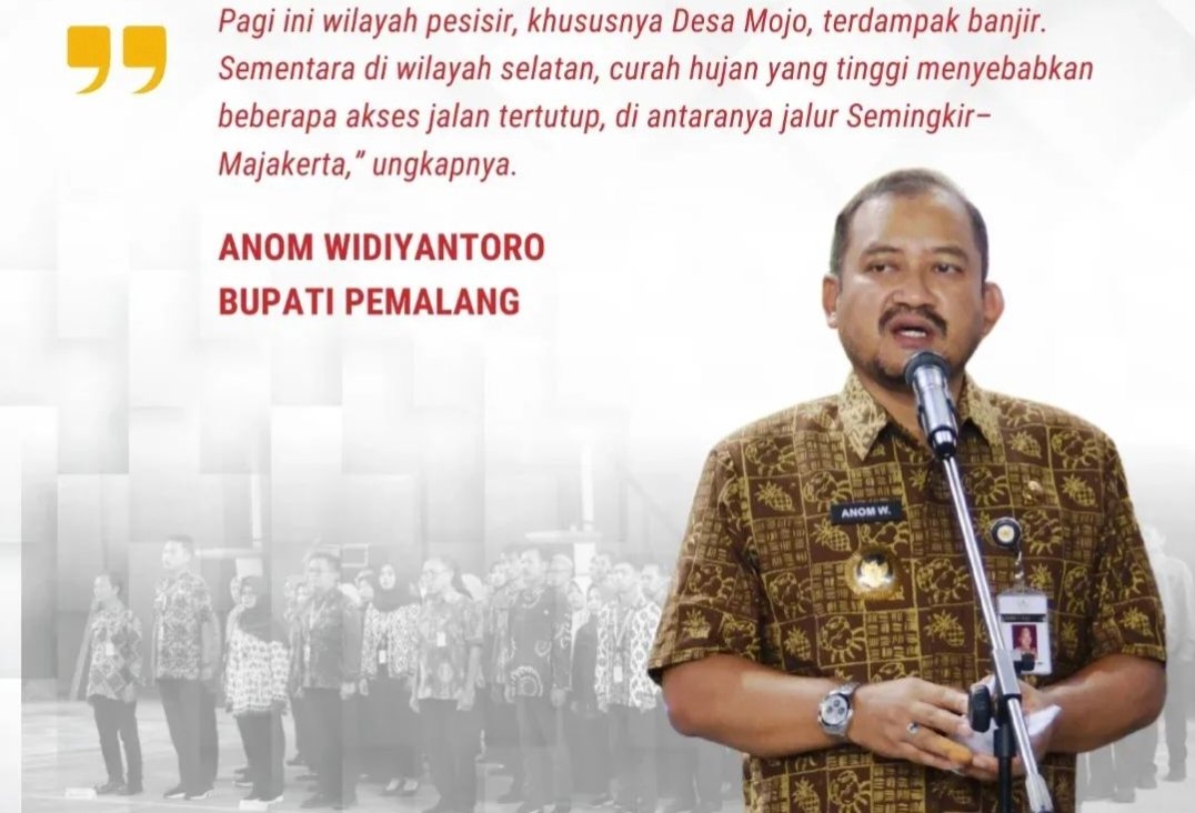 Emsatunews.co.id, Pemalang – Bupati Pemalang menegaskan agar seluruh Aparatur Sipil Negara (ASN) di lingkungan Pemerintah Kabupaten Pemalang tidak mengendurkan kewaspadaan di tengah ancaman cuaca ekstrem. Instruksi ini menyusul terjadinya bencana banjir dan tanah longsor yang melanda sejumlah titik akibat fenomena kemarau basah.