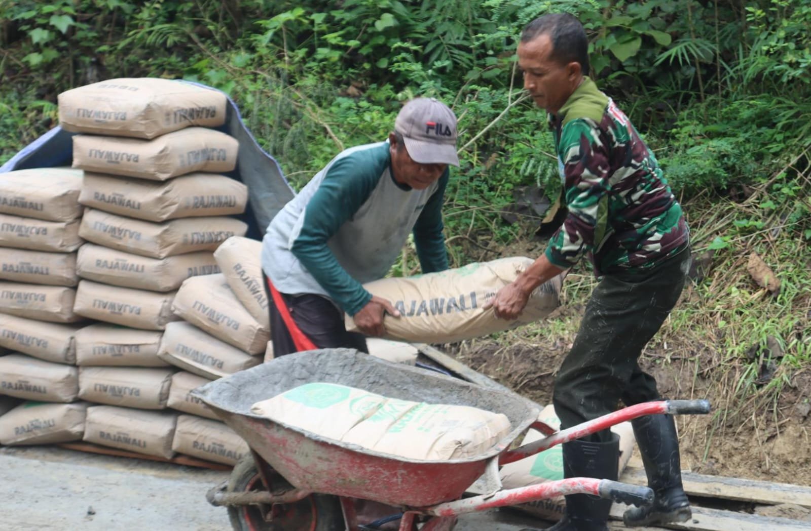 Pemandangan inspiratif ini terlihat pada Minggu (01/03/2026), saat Serka Lantoro, anggota Koramil 16/Larangan yang tergabung dalam Satgas TMMD, bekerja berdampingan dengan warga Desa setempat. Salah satunya adalah Yadi (51), warga yang tetap antusias membantu penyelesaian sasaran fisik pembangunan meskipun dalam kondisi menahan lapar dan dahaga.