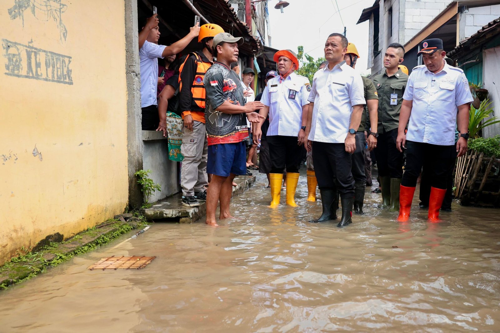Didampingi Bupati Karanganyar Rober Christanto dan Wakil Bupati Ade Eliana, Luthfi menyusuri pematang sawah demi mencapai permukiman warga yang terisolasi di Dusun Daleman, Desa Ngringo, Kecamatan Jaten. Kehadiran mendadak orang nomor satu di Jateng ini sempat mengejutkan warga yang tengah berjaga di depan rumah mereka yang tergenang.”Tetap semangat, nggih. Saya datang bersama Pak Bupati untuk meninjau langsung. Kita upayakan air segera surut,” ujar Luthfi saat berdialog dengan salah satu warga setempat.