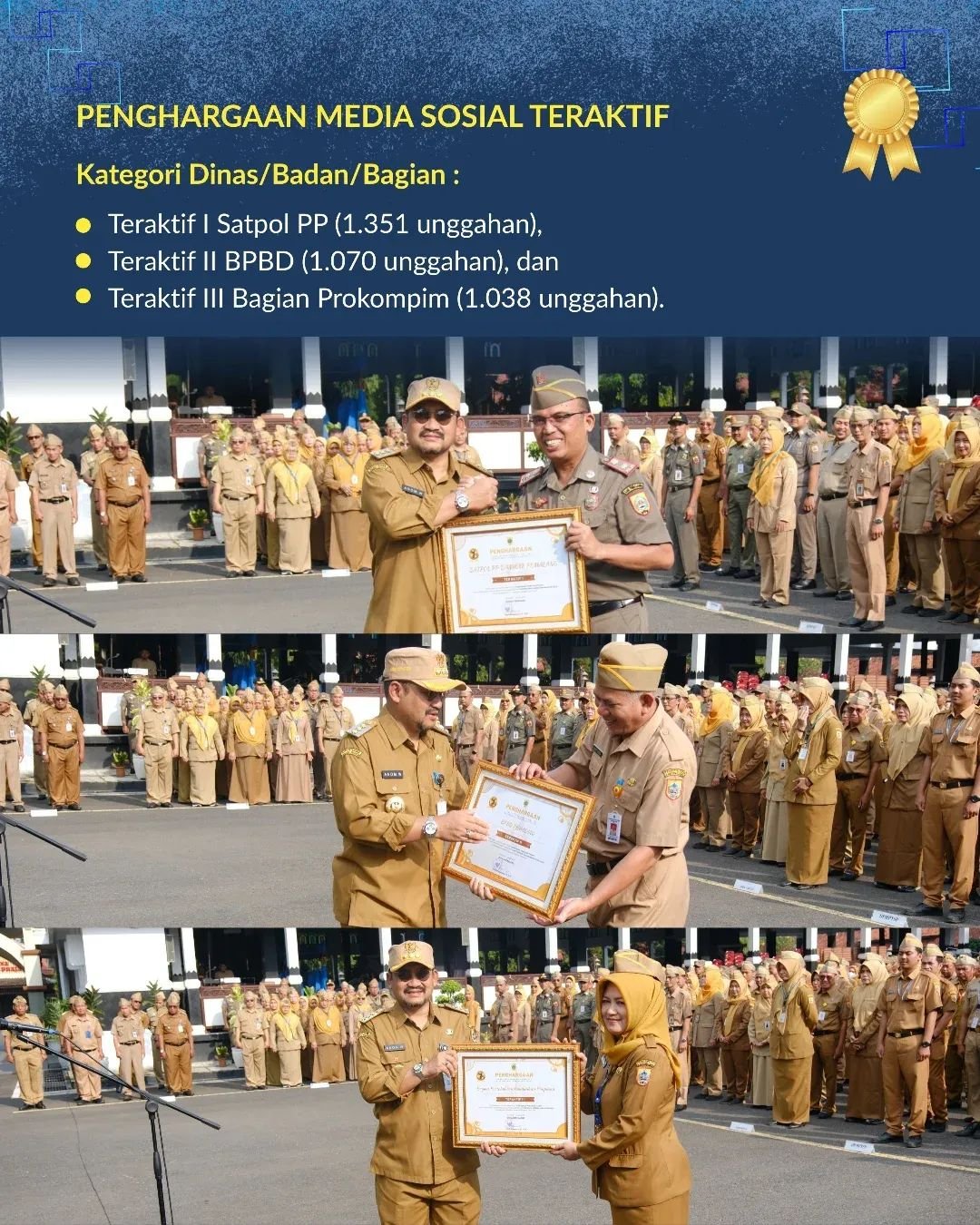 Ia juga menekankan pentingnya implementasi tagline “SOUL” sebagai fondasi semangat melayani. Bagi unit kerja yang belum meraih prestasi, Bupati memberikan suntikan motivasi berupa dukungan kuota internet agar ke depan pengelolaan platform digital mereka semakin optimal.