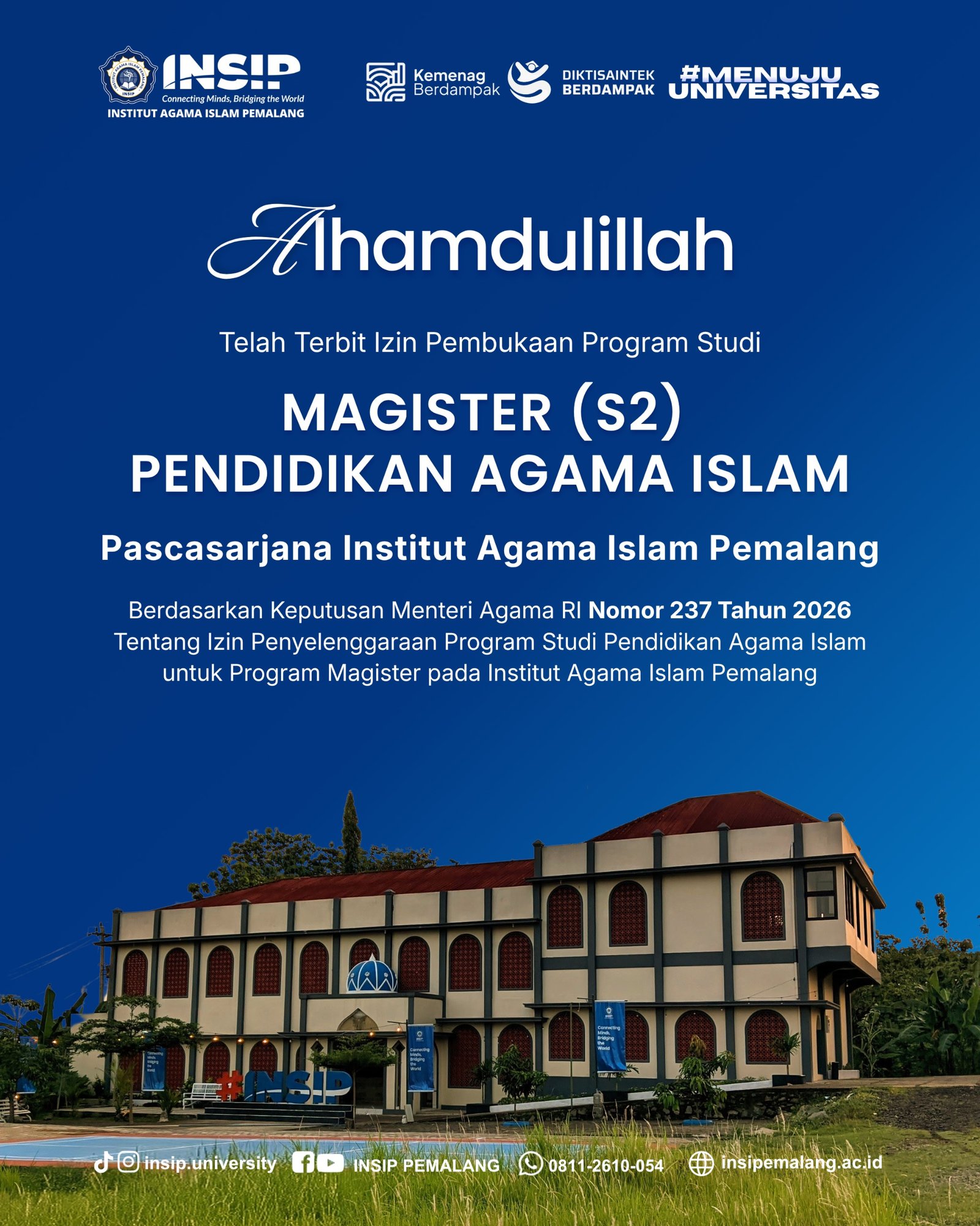 Emsatunews.co.id, Pemalang – Kabar membanggakan datang dari dunia pendidikan tinggi di Kabupaten Pemalang. Institut Agama Islam (INSIP) Pemalang secara resmi kini mengantongi izin untuk menyelenggarakan Program Studi (Prodi) Magister (S2) Pendidikan Agama Islam (PAI).