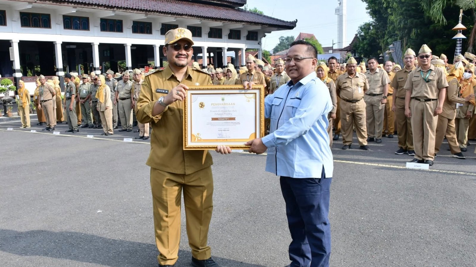 ​Apresiasi bergengsi ini diberikan langsung oleh Bupati Pemalang, Anom Widiyantoro, di tengah suasana khidmat Apel Bersama jajaran Organisasi Perangkat Daerah (OPD) di halaman Timur Pendopo Kabupaten Pemalang, Senin (6/4/2026).